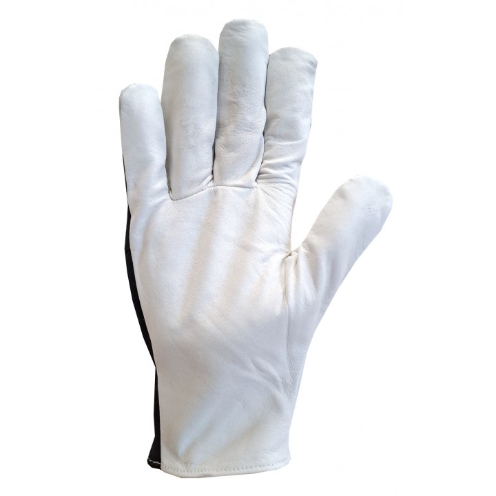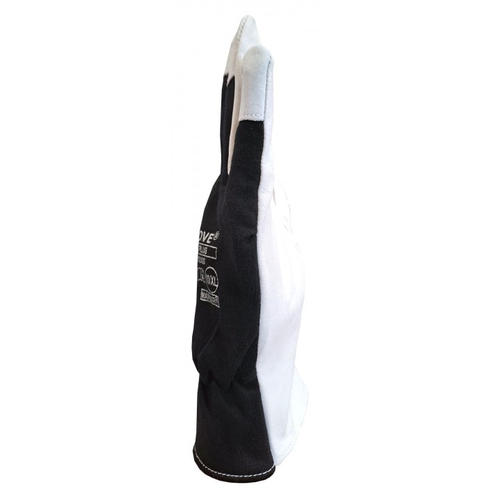 Welding protective gloves made of goatskin with a split cowhide cuff. The gloves are sewn with KEVLAR threads that are very resistant to high temperatures. The gloves are full-leather - made of leather, including a cuff reaching to the middle of the forearm, thus protecting against soaking and protecting the wrist against injuries. The length of the glove is 35 cm.