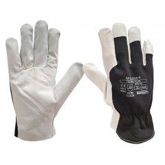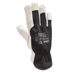 Protective gloves, insulated, made of elastic fabric, reinforced with goatskin, full-handed. Velcro at the wrist. They have leather-reinforced fingertips and an index finger. Perfect for work at low temperatures, used in warehouses and cold stores.