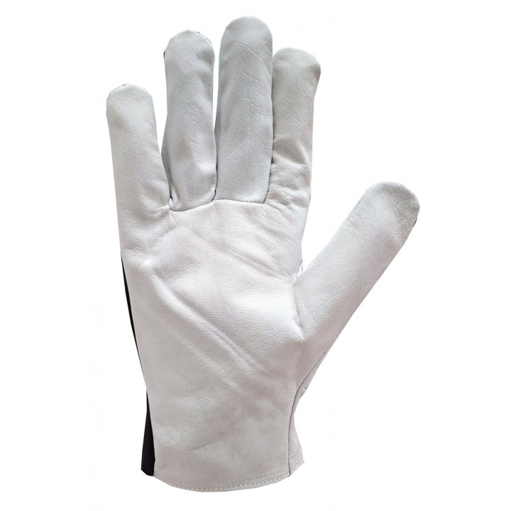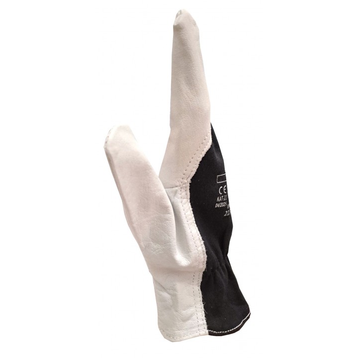 Protective gloves made of flexible cotton-polyester knit fabric reinforced with full-grain leather. Elastic wrist closure. Perfect for assembly work requiring precision.
