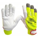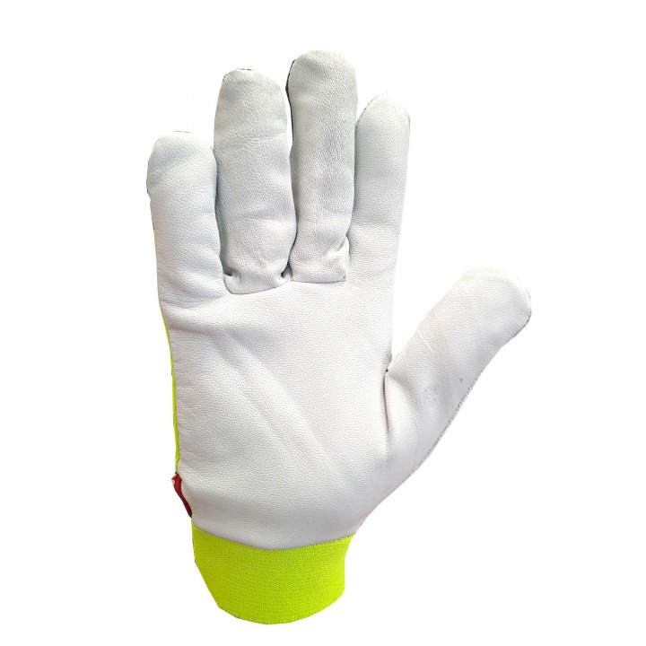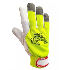 Rękawice ochronne ocieplane wykonane z fluorescencyjnej dzianiny bawełniano-poliestrowej części chwytnej ze skóry licowej. Wewnętrzna część rękawicy wykonana z dzianiny polarowej, która zapewnia ciepło i komfort użytkowania. Końcówki palców wzmocnione odblaskowa tkaniną. Rękawice idealnie sprawdzą się w niskich temperaturach otoczenia typu magazyny, chłodnie.