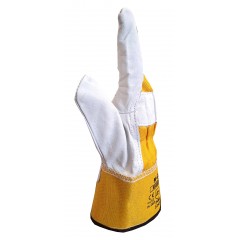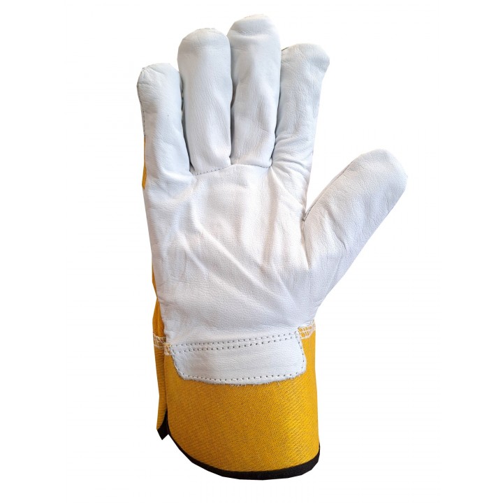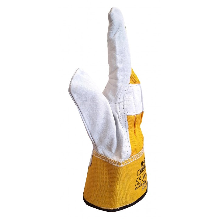 Rękawice ochronne wykonane z elastycznej dzianiny bawełniano-poliestrowej wzmacniane skórą licową, całodłonicowe, przy nadgarstku rzep ściągający. Doskonałe do prac montażowych, wymagających precyzji.