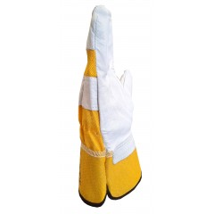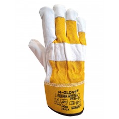 Rękawice ochronne ocieplane wykonane z elastycznej dzianiny wzmacniane skórą kozią, całodłonicowe. Przy nadgarstku rzep ściągający. Posiadają wzmocnione skórą końcówki palców i palec wskazujący. Idealne do prac w niskich temperaturach, stosowane w magazynach, chłodniach.