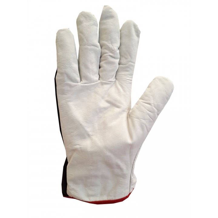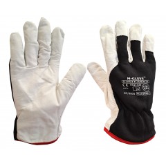 Rękawice ochronne ocieplane wykonane w części chwytnej ze skóry licowej. W części wierzchniej z dzianiny bawełniano-poliestrowej. Wewnętrzna część rękawicy wykonana z dzianiny polarowej, która zapewnia ciepło i komfort użytkowania. Końcówki palców wzmocnione skórą licową. Podgumowany sztywny mankiet. Rękawice idealnie sprawdzą się w niskich temperaturach otoczenia typu magazyny, chłodnie.
