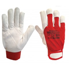 Rękawice ochronne ocieplane wykonane z elastycznej dzianiny bawełniano-poliestrowej wzmacniane skórą licową, całodłonicowe. Przy nadgarstku gumka ściągająca. Posiadają wzmocnione skórą końcówki palców i palec wskazujący. Doskonałe do prac montażowych wymagających precyzji.