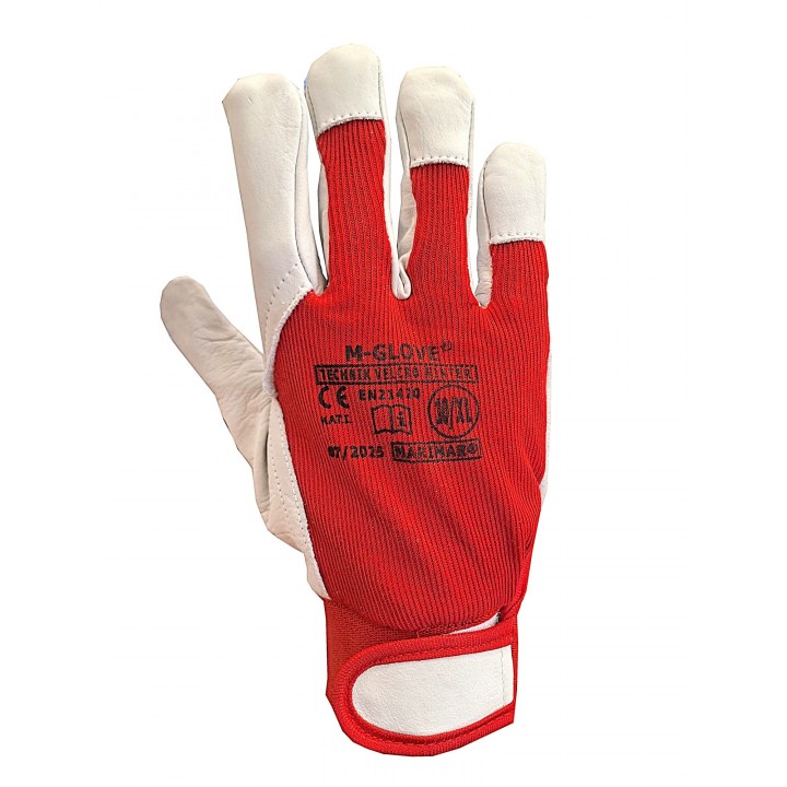 Rękawice ochronne wykonane z elastycznej dzianiny bawełniano-poliestrowej w części chwytnej wzmacniane skórą licową, całodłonicowe, przy nadgarstku rzep ściągający. Doskonałe do prac montażowych, wymagających precyzji.