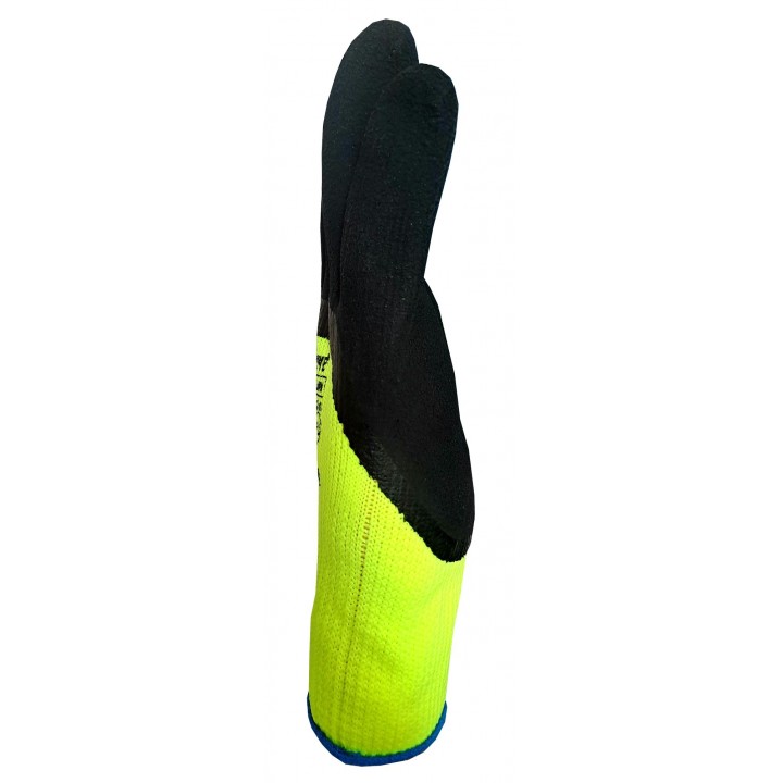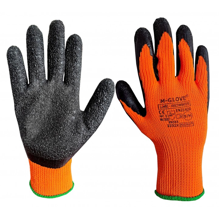 Rękawice ochronne ocieplane. Wykonane z przędzy poliestrowej (ścieg7G), która gwarantuje komfort użytkowania oraz ciepło. Powlekane spienionym lateksem o porowatej strukturze. Idealne do prac w niskich temperaturach, stosowane w magazynach, chłodniach.