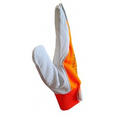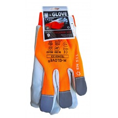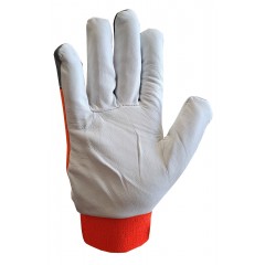 Rękawice ochronne ocieplane wykonane z fluorescencyjnej dzianiny bawełniano-poliestrowej części chwytnej ze skóry licowej. Wewnętrzna część rękawicy wykonana z dzianiny polarowej, która zapewnia ciepło i komfort użytkowania. Końcówki palców wzmocnione odblaskowa tkaniną. Rękawice idealnie sprawdzą się w niskich temperaturach otoczenia typu magazyny, chłodnie.