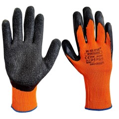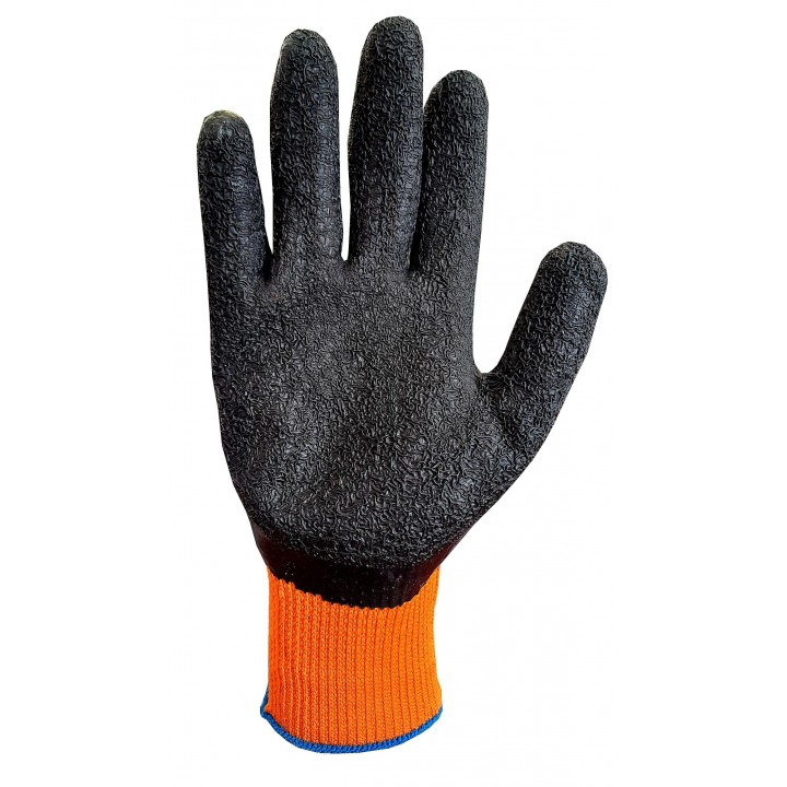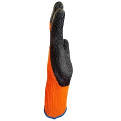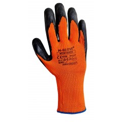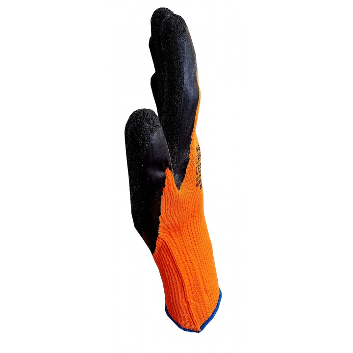 Rękawice ochronne ocieplane wykonane z dzianiny poliestrowej, powlekane miękkim odpornym na ścieranie lateksem. Na końcówkach palców pokryte spienionym lateksem co zapewnia bardzo dobrą przyczepność.