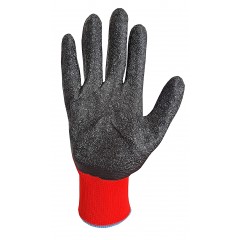 Rękawice ochronne ocieplane wykonane z pomarańczowej dzianiny poliestrowej, powlekane miękkim odpornym na ścieranie lateksem w kolorze czarnym. Struktura gumy zapewnia wyśmienitą zręczność i bardzo dobrą przyczepność.