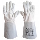Rękawice ochronne w całości wykonane ze skóry w kolorze białym. W części dłonicowej wykonane ze skóry licowej, natomiast mankiet z dwoiny bydlęcej. Część donicowa oraz wierzchnia wykonane są z jednego kawałka skóry, dzięki czemu wykazują większą wytrzymałość i odporność na przetarcia.