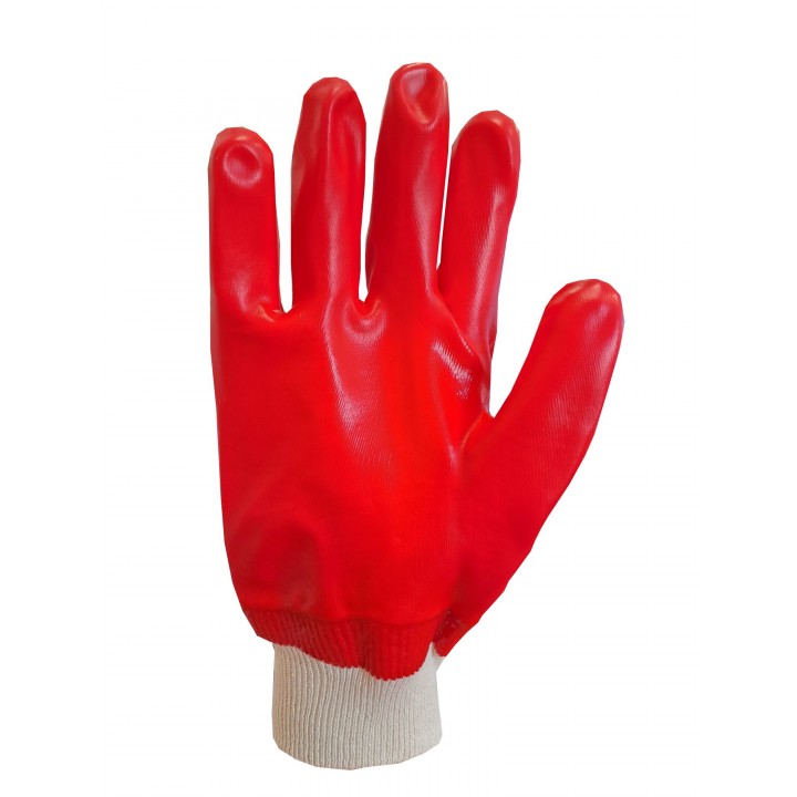 Rękawice z dzianiny powlekane szorstkowanym lateksem, ścieg 10G. Zakończone elastycznym ściągaczem.
