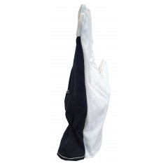 Rękawice ochronne wykonane z białej elastycznej dzianiny poliestrowej, bez szwów, powlekane w części chwytnej białym poliuretanem, zakończone elastycznym ściągaczem.