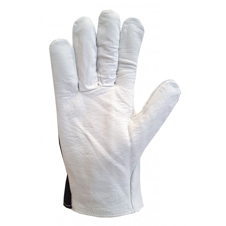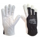 Rękawice ochronne ocieplane wykonane z elastycznej dzianiny wzmacniane skórą kozią, całodłonicowe. Przy nadgarstku rzep ściągający. Posiadają wzmocnione skórą końcówki palców i palec wskazujący. Idealne do prac w niskich temperaturach, stosowane w magazynach, chłodniach.