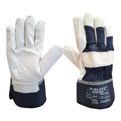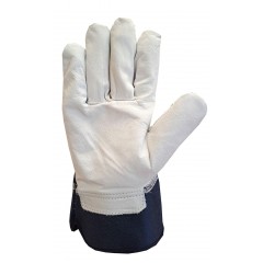 Rękawice ochronne wykonane z elastycznej dzianiny bawełniano-poliestrowej wzmacniane skórą licową, całodłonicowe. W nadgarstku gumka ściągająca. Doskonałe do prac montażowych, wymagających precyzji.