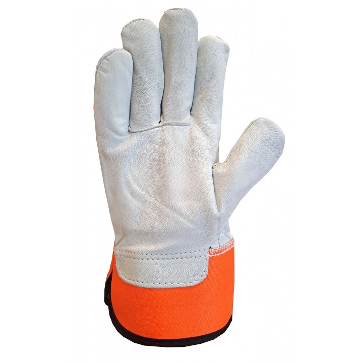 Rękawice ochronne wykonane z elastycznej dzianiny bawełniano-poliestrowej w części chwytnej wzmacniane skórą licową, całodłonicowe, przy nadgarstku rzep ściągający. Doskonałe do prac montażowych, wymagających precyzji.